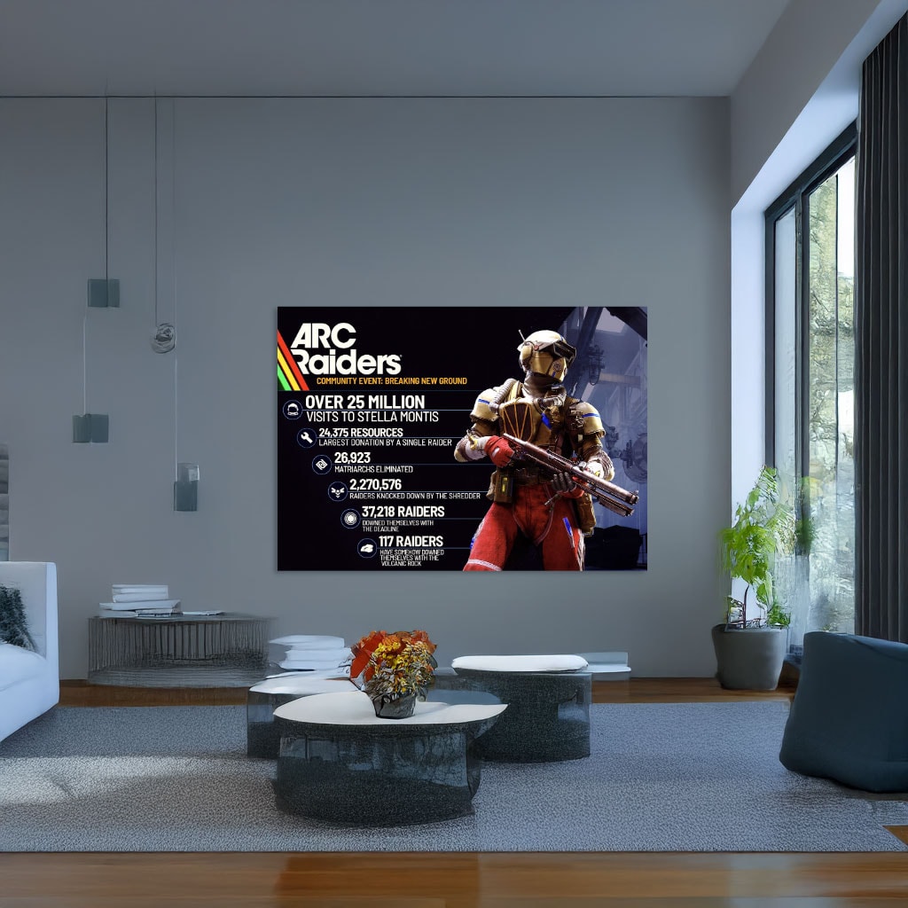 Celebrate the excitement of the ARC Raiders community with the Community Event: Breaking New Ground Poster. This high-definition artwork captures a dynamic scene inspired by the event, featuring futuristic landscapes, ARC Raiders characters, and action-packed elements. Perfect for gamers, ARC Raiders enthusiasts, and digital art collectors looking to commemorate a landmark event in the game universe.