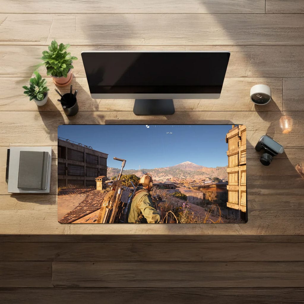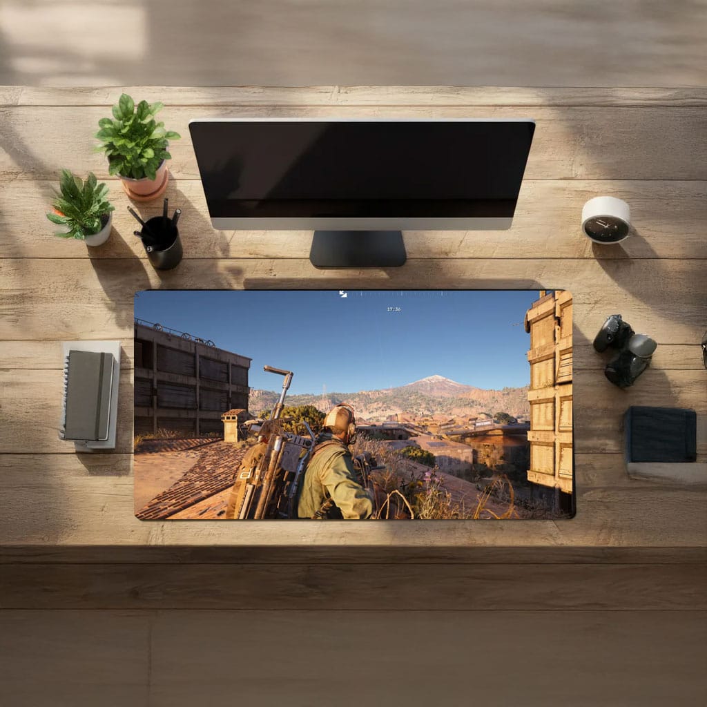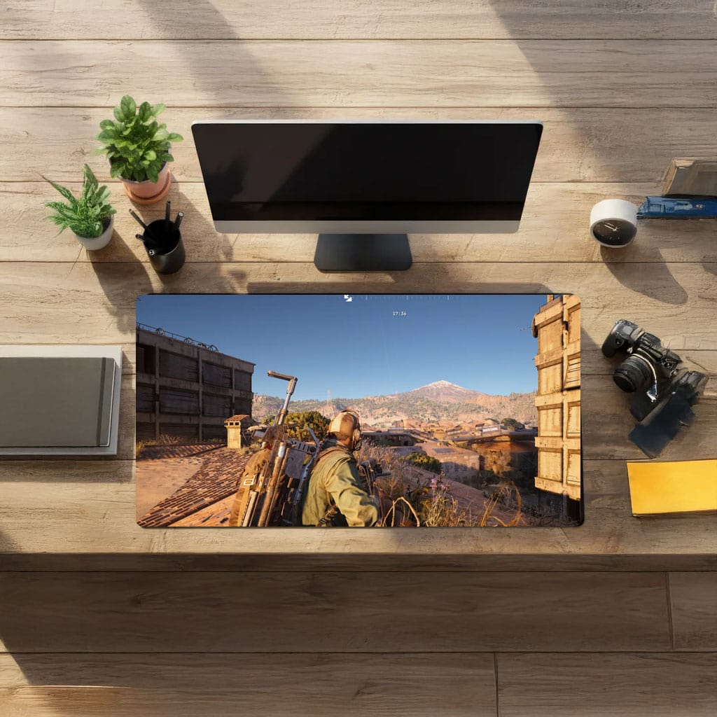 Featuring cinematic desert sniper artwork, the extended mat provides ample space for your keyboard and mouse while delivering a smooth fabric surface for accurate tracking and controlled flicks. The non-slip rubber base keeps the mat firmly anchored during intense play or long work sessions, making it as functional as it is atmospheric.