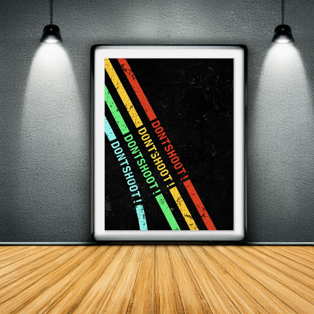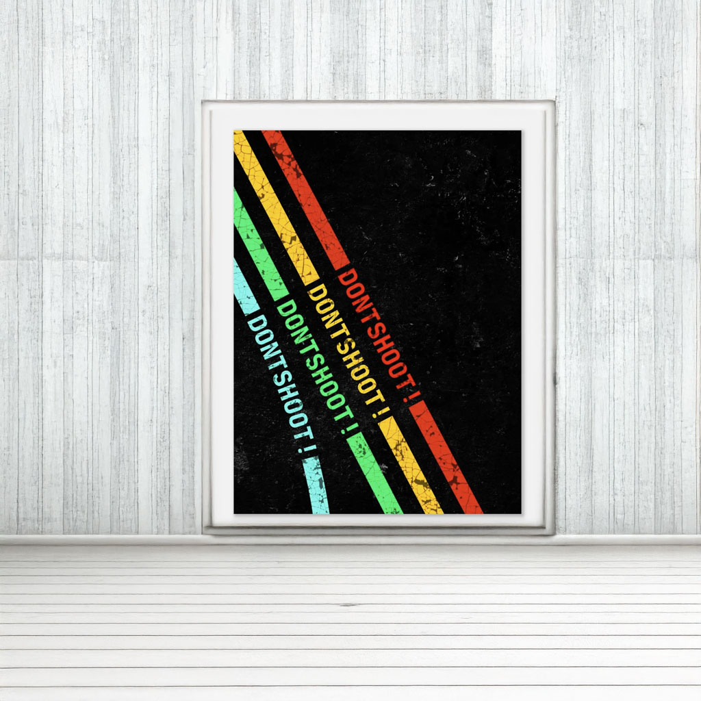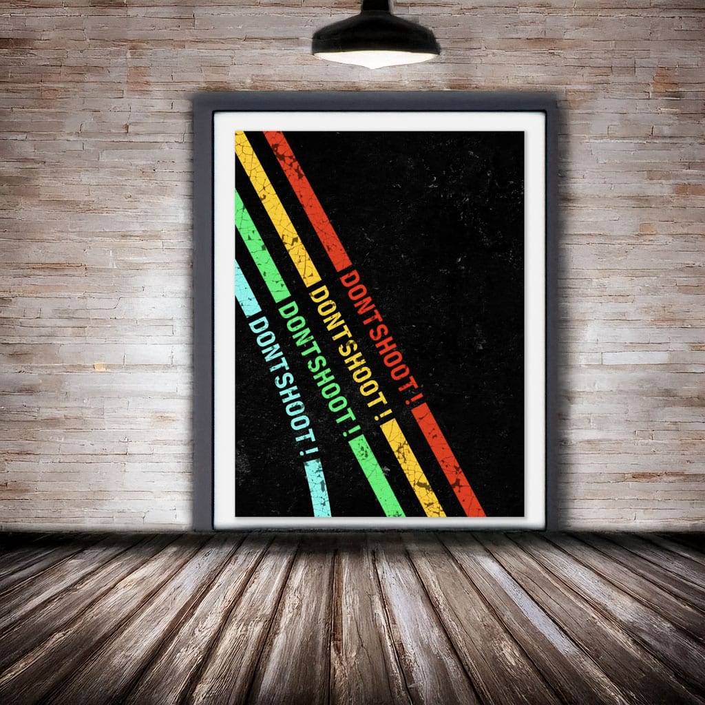 Bring the chaotic charm of the battlefield to your wall with this “Don’t Shoot!” Poster.