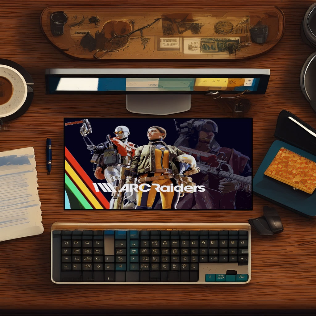 Transform your desk into a retro-futuristic battlestation with the energy and personality of the ARC Raiders Game Characters Desk Mat.