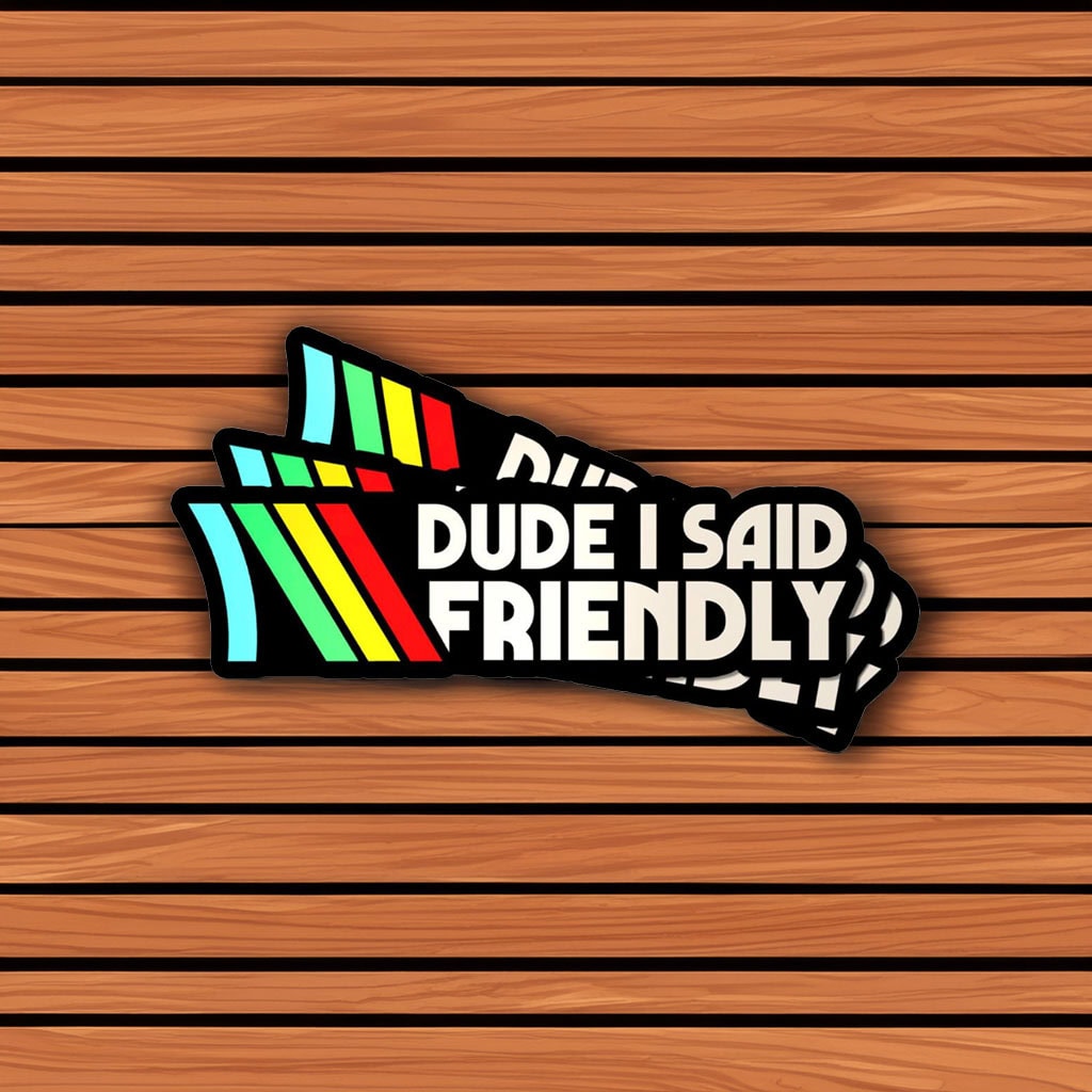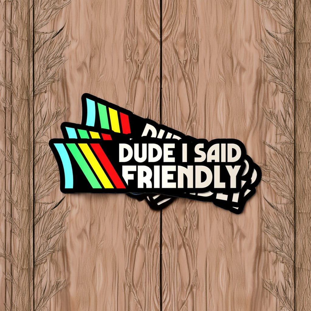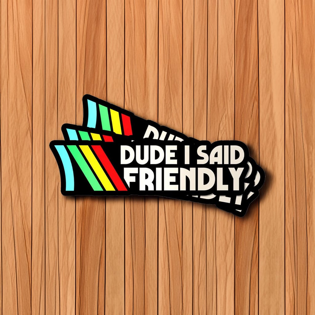 Perfect for Arc Raiders fans, gamers, and collectors who love quirky gaming references, the “Dude I Said Friendly” Sticker adds humor, style, and personality to your everyday items.