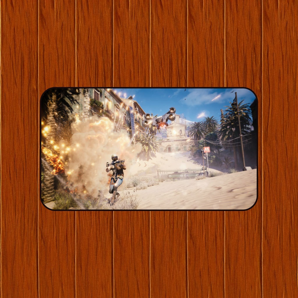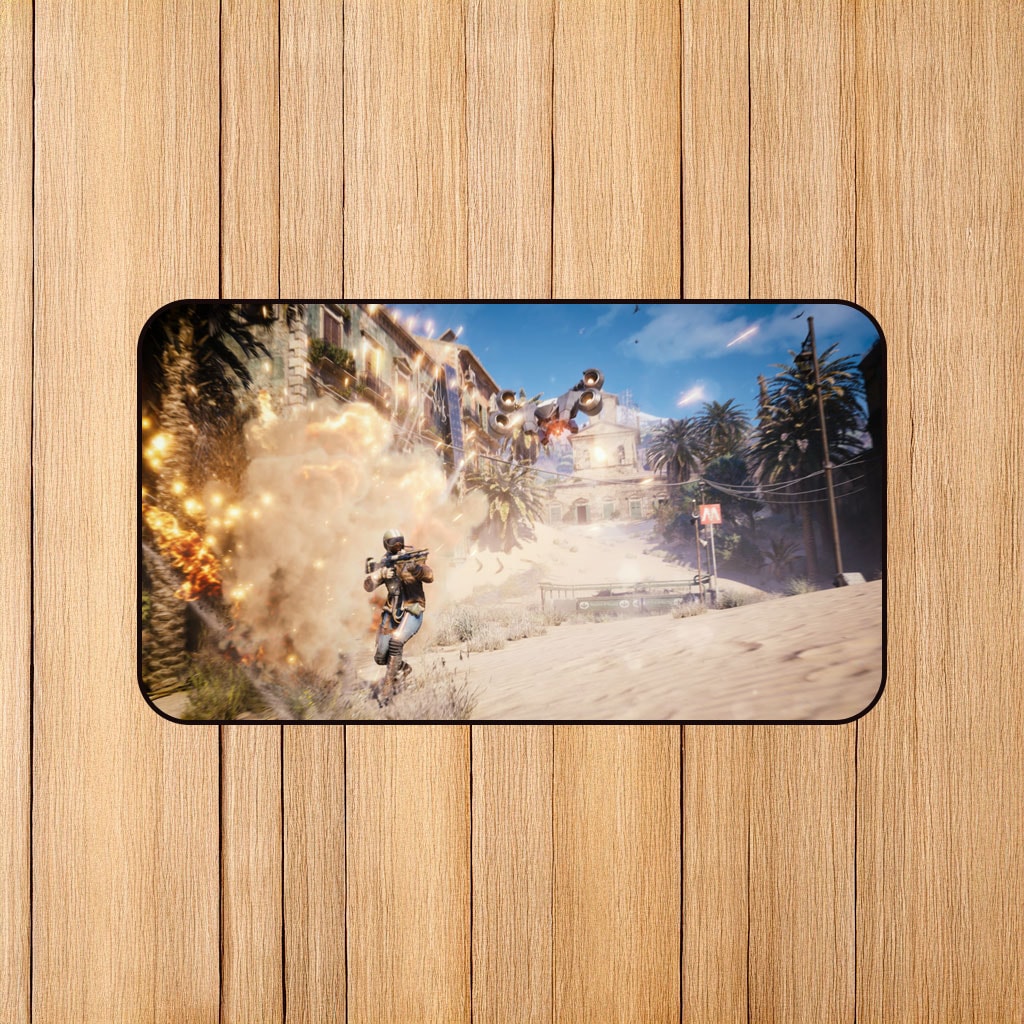 Engineered for performance and durability, the desk pad features a smooth fabric surface for precise mouse tracking and a non-slip rubber base to keep everything firmly in place. Reinforced stitched edges and high-quality printing ensure the explosive scene stays sharp through long gaming sessions and everyday use.