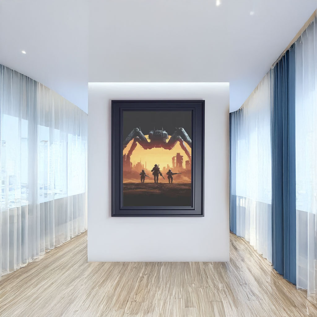 Bring the cinematic energy of futuristic battles and resistance fighters into your space with this ARC Raiders–inspired poster, designed for fans who love bold sci-fi aesthetics, mechanical threats, and atmospheric world-building.