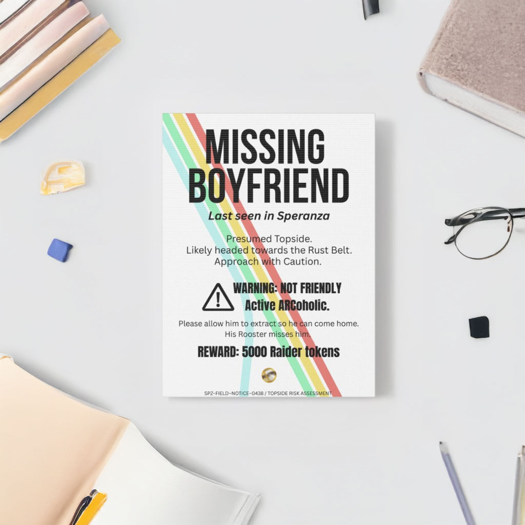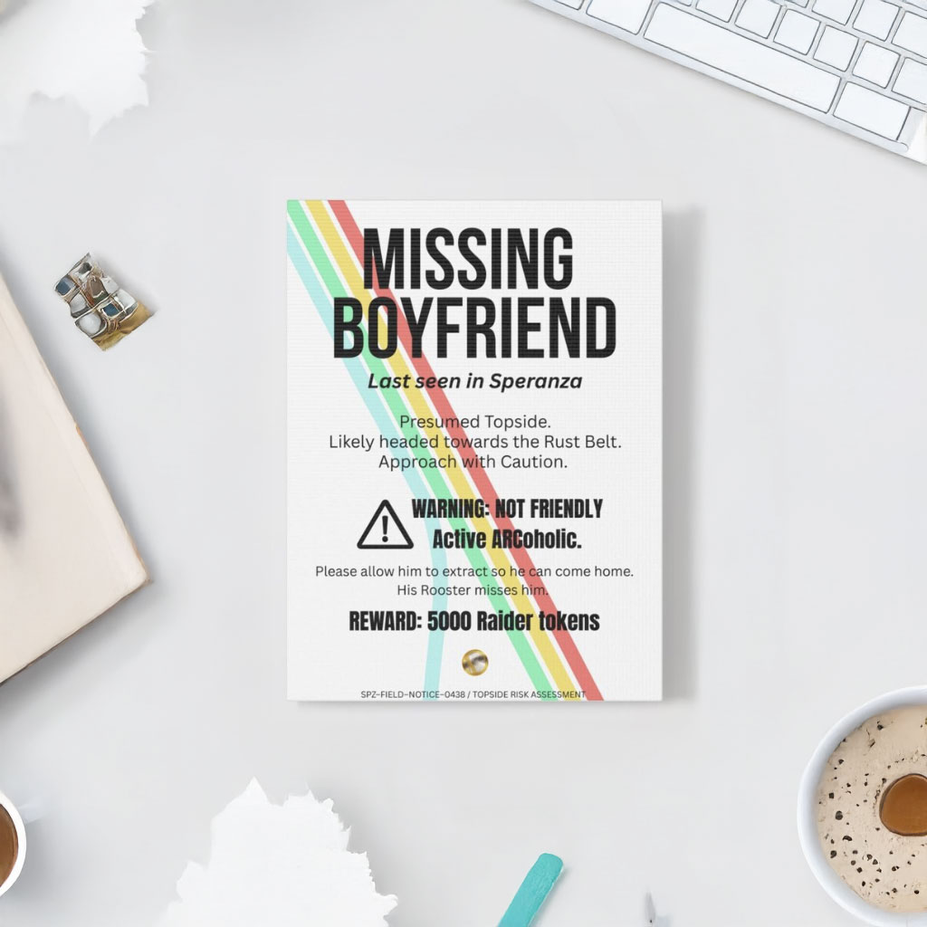 ARC Raiders Missing Boyfriend Poster | Sci-Fi Humor & In-Game Style Wall Art