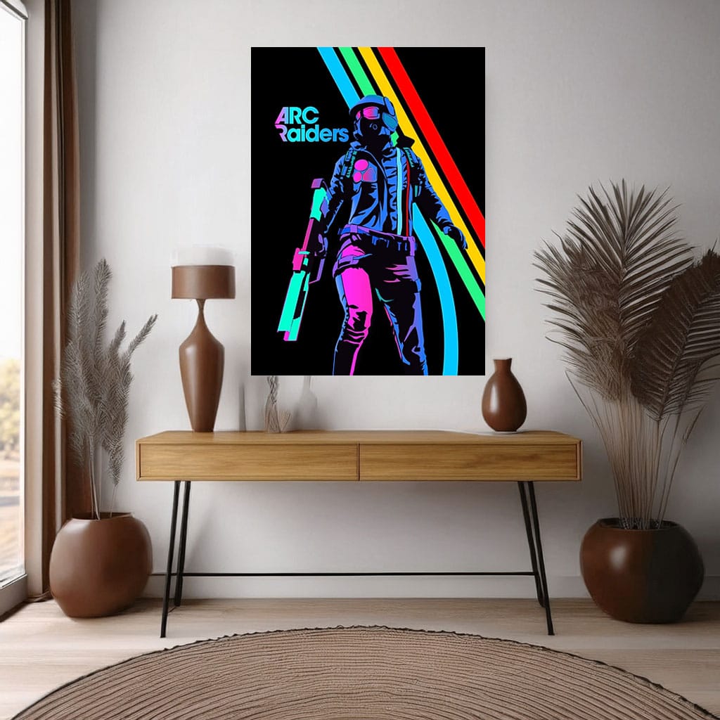Step into a bold, stylized future with the ARC Raiders Neon Ranger Retro Color Poster. Inspired by the ARC Raiders universe and classic retro sci-fi aesthetics, this artwork blends vibrant neon colors with a heroic ranger presence—capturing confidence, danger, and style in a single striking scene.
