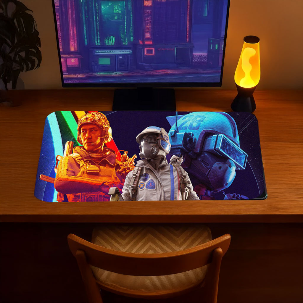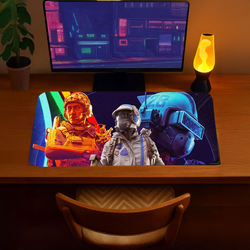 Featuring a neon-lit squad portrait design, this desk mat highlights the individuality and unity of the ARC Raiders team with a cinematic, cyber-inspired look. The extended surface provides generous space for your keyboard and mouse, while the smooth fabric top ensures precise tracking for gaming, work, or creative use. A non-slip rubber base keeps everything firmly in place during intense sessions.