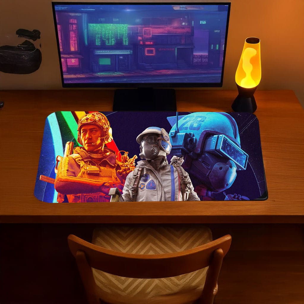 ARC Raiders Neon Squad Portrait Desk Mat – Futuristic Sci-Fi Gaming Mouse Pad