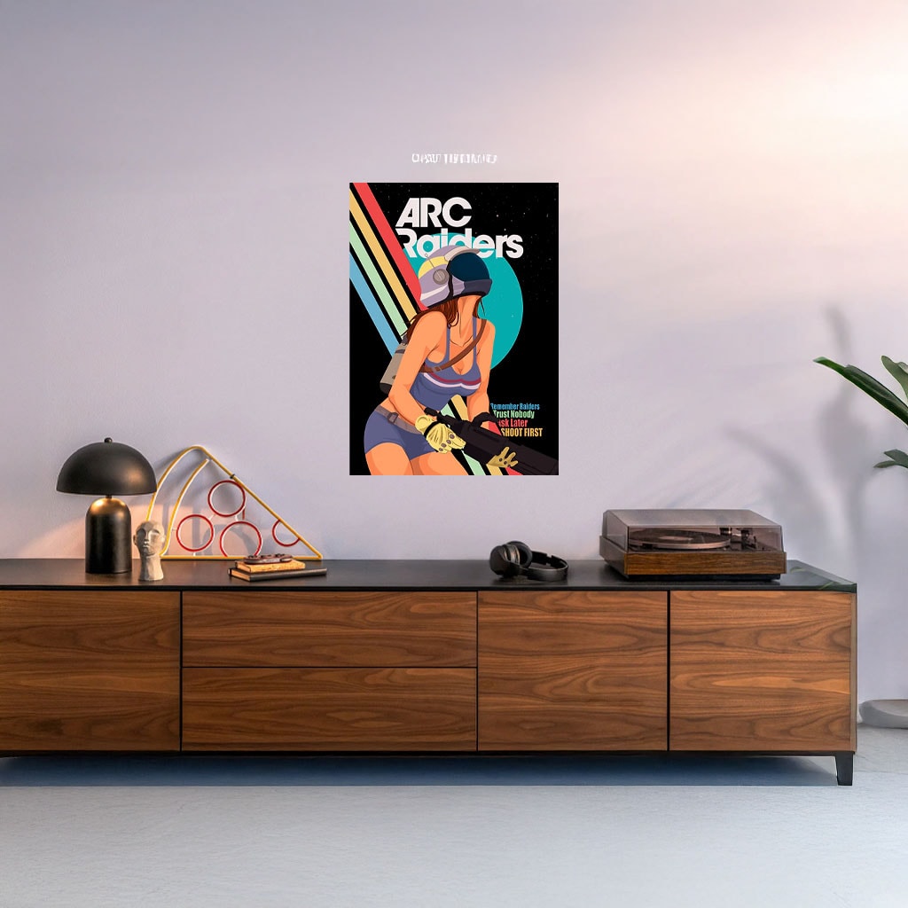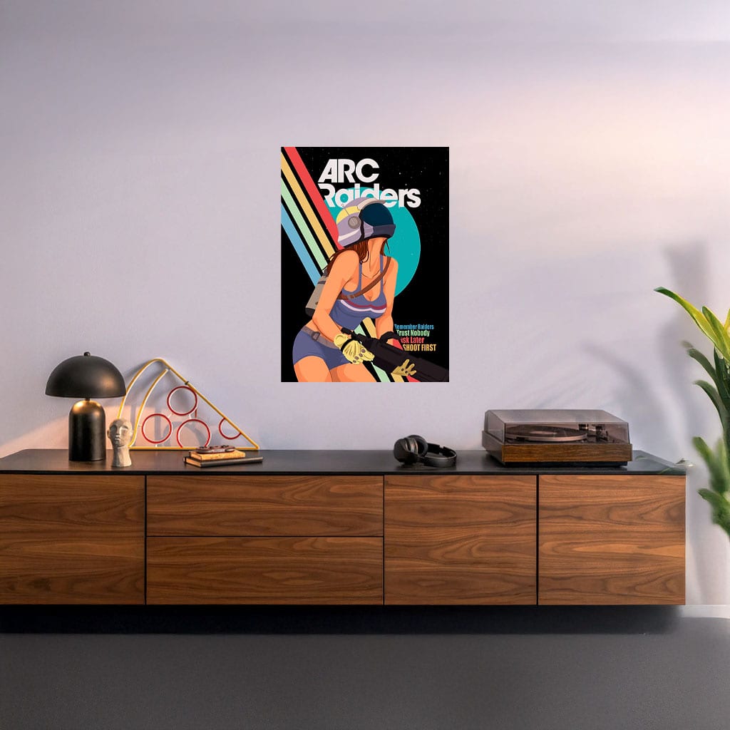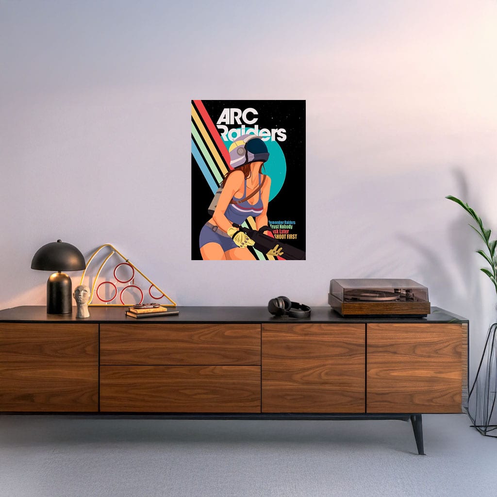 ARC Raiders fans, gamers who appreciate strong female characters, retro sci-fi art lovers, collectors, streamers, gaming room décor, or anyone looking to add confident, vintage-inspired sci-fi character art to their space.