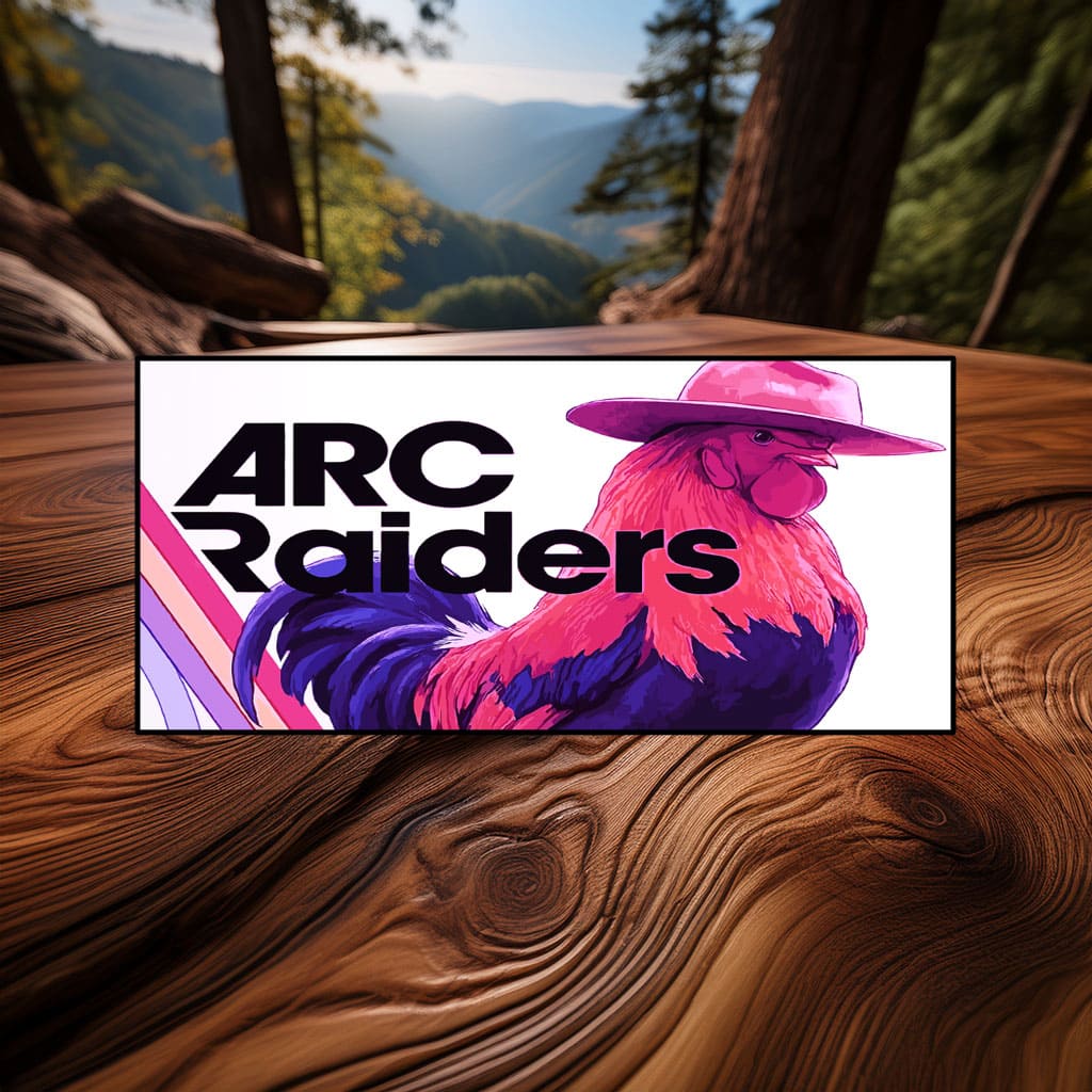 Quirky Rooster Design: Features the ARC Raiders rooster with a playful cowboy hat