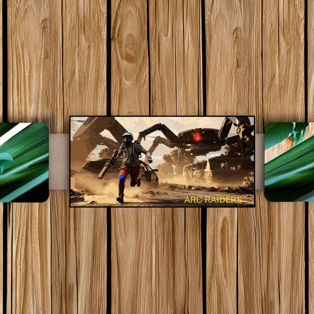 Turn your desk into a high-stakes sci-fi chase scene with the Arc Raiders Running from the Machine Desk Mat, where cinematic action meets high-performance design.