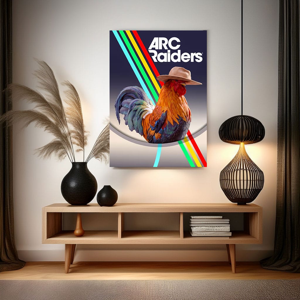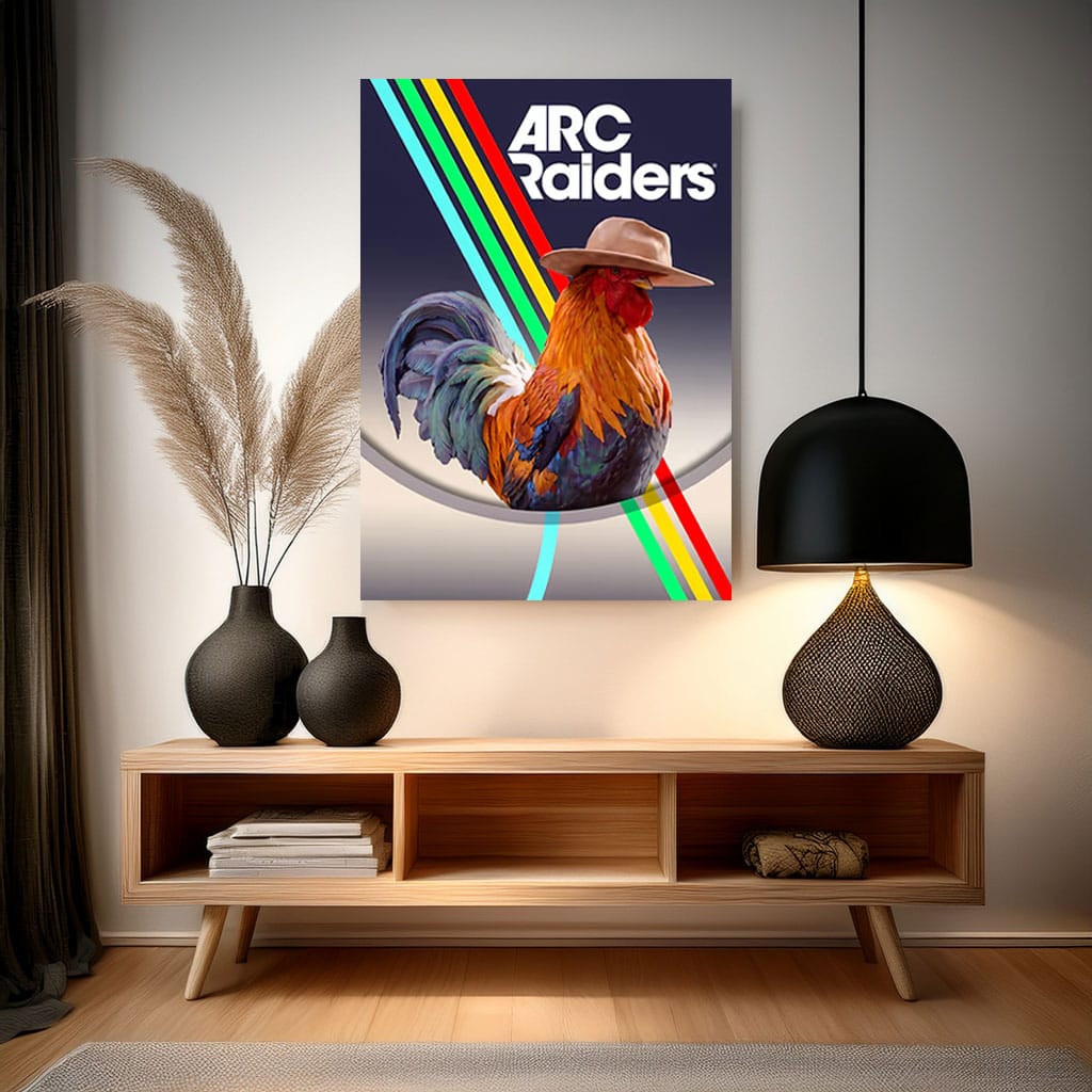 Bring humor, grit, and old-school attitude to your space with the ARC Raiders Scrappy Rooster Mascot Retro Poster. Inspired by the scrappy spirit of ARC Raiders and classic arcade-era mascots, this artwork blends playful character design with a battle-worn retro aesthetic that doesn’t take itself too seriously.