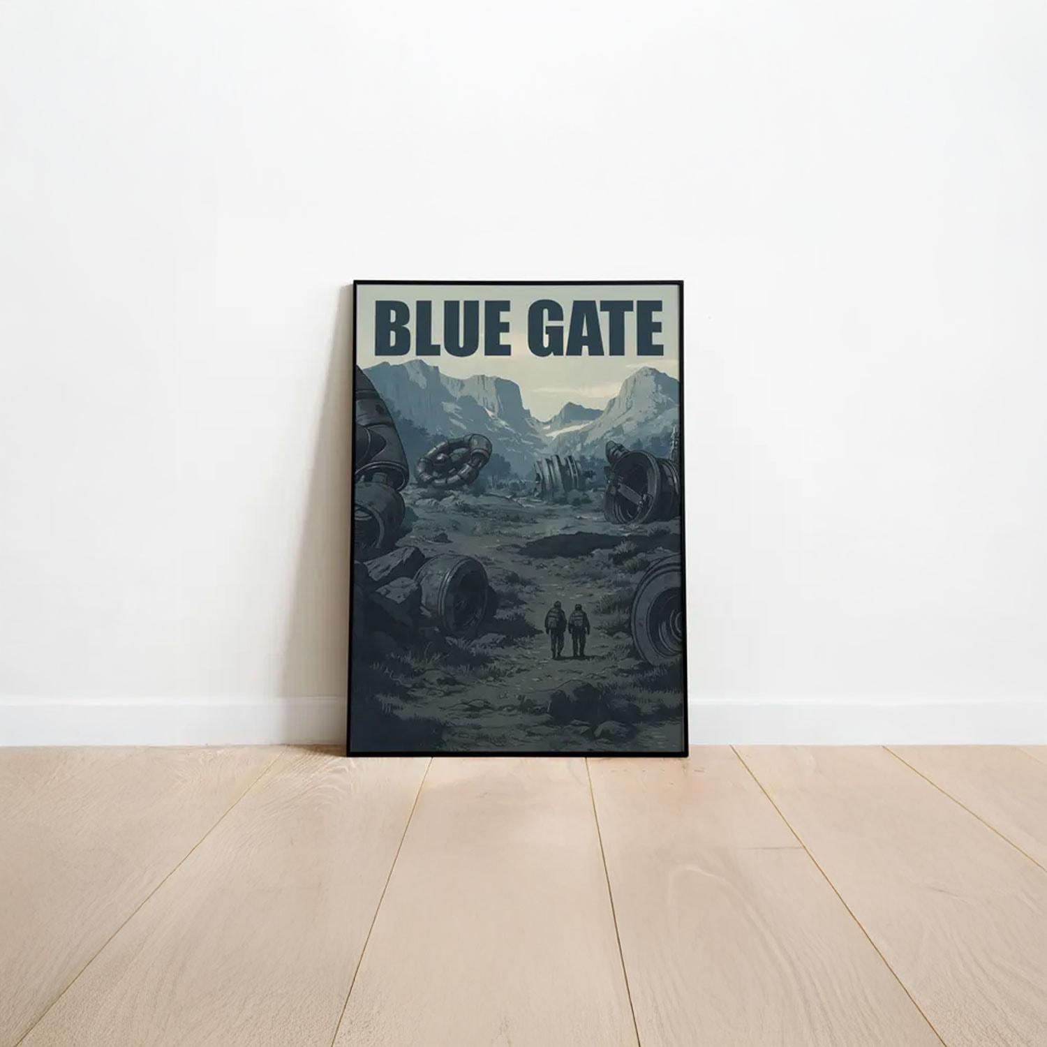 Let the Blue Gate – Wasteland Exploration Poster pull you into a world of abandoned horizons, hidden secrets, and the thrill of stepping through the unknown. A perfect centerpiece for fans of sci-fi adventure and immersive environmental art.