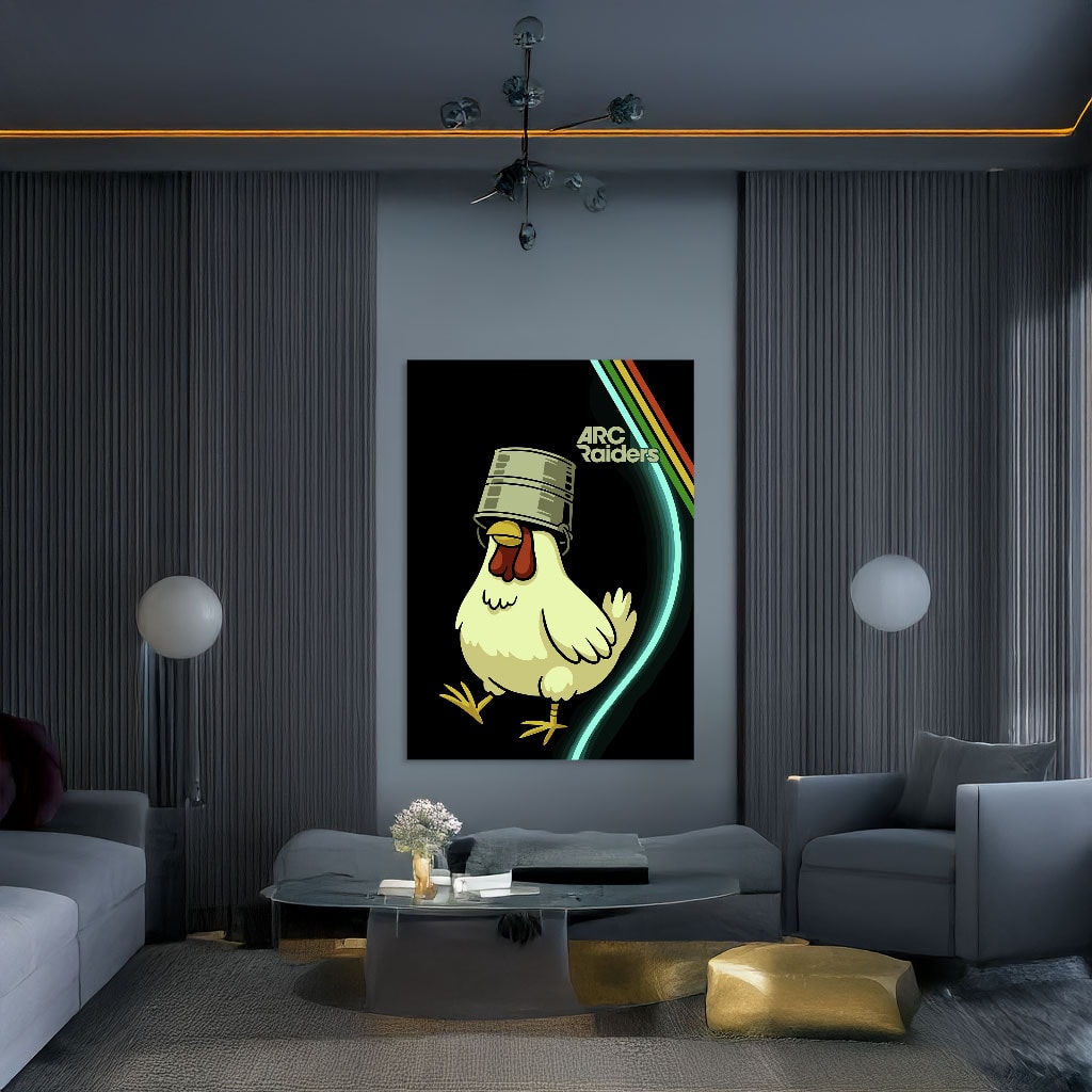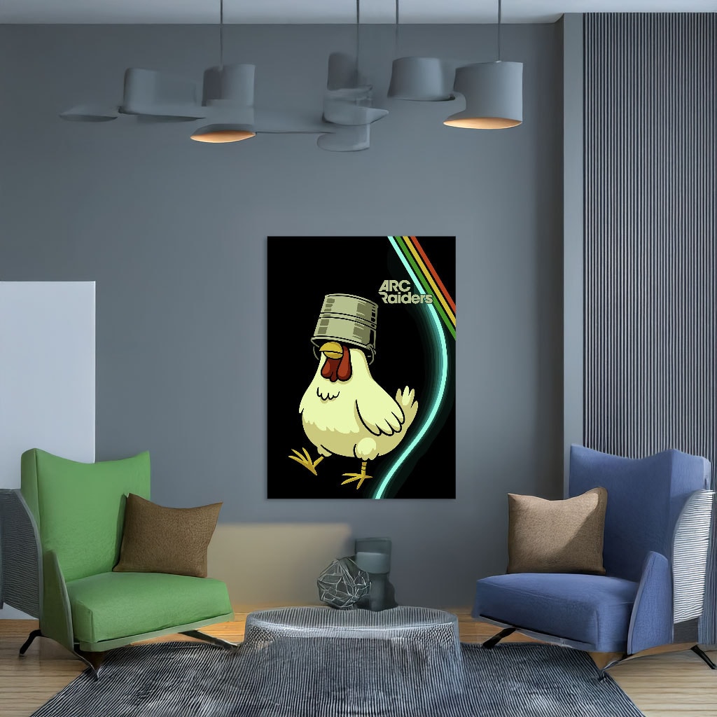 Celebrate the fun side of the Arc Raiders universe with the Bucket-Headed Chicken Poster—a bold, whimsical, and futuristic addition to any fan’s collection.
