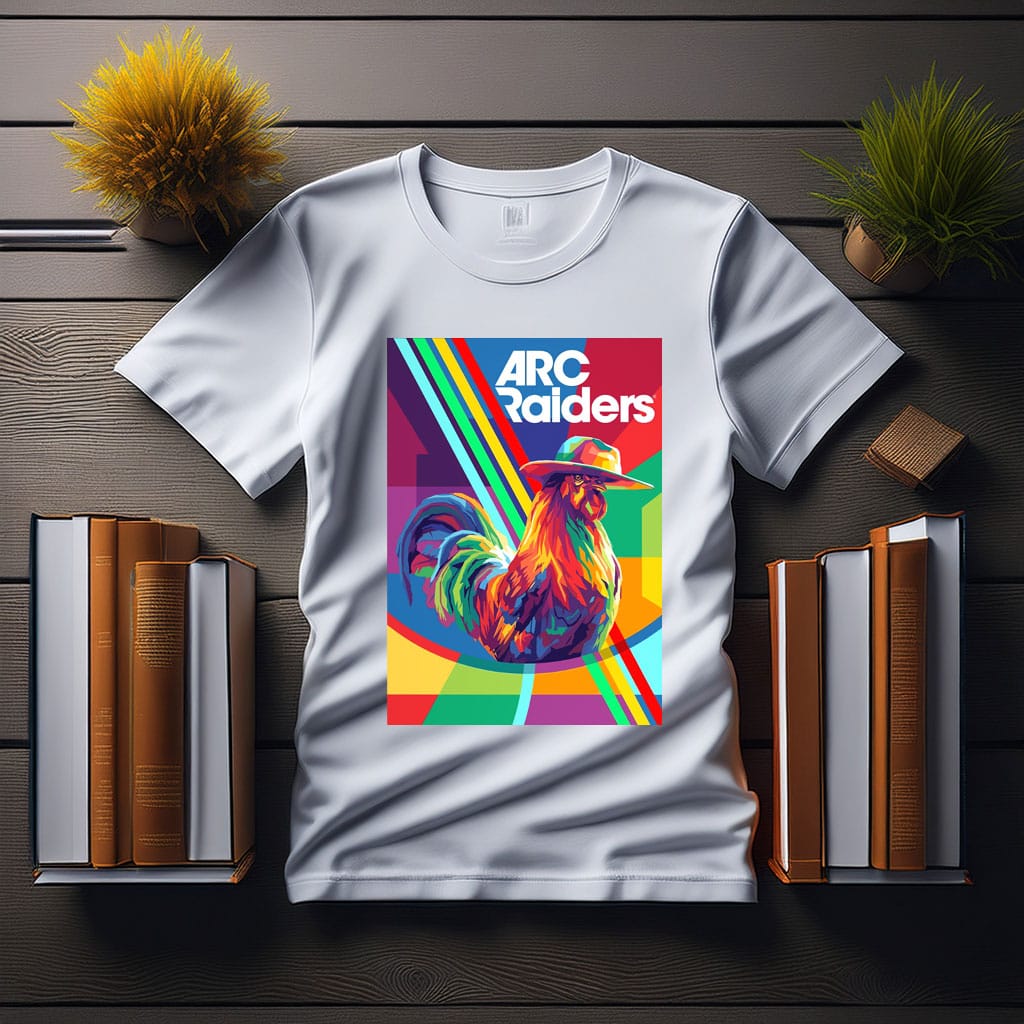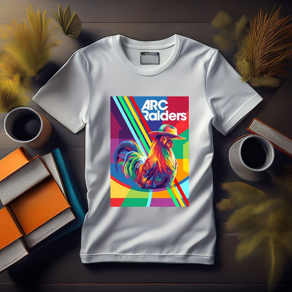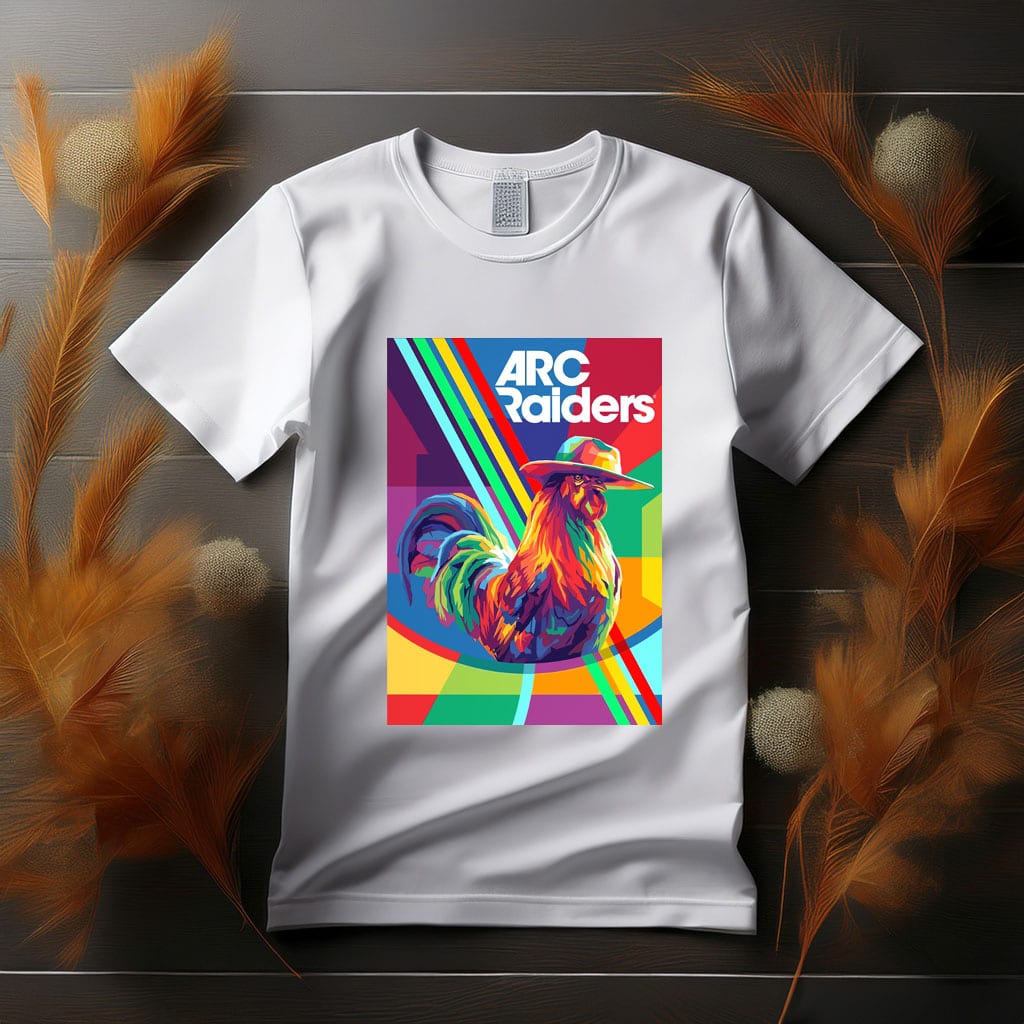 Colorful Rooster with Hat – Arc Raiders Shirt – Bold Gamer Art with Playful Attitude