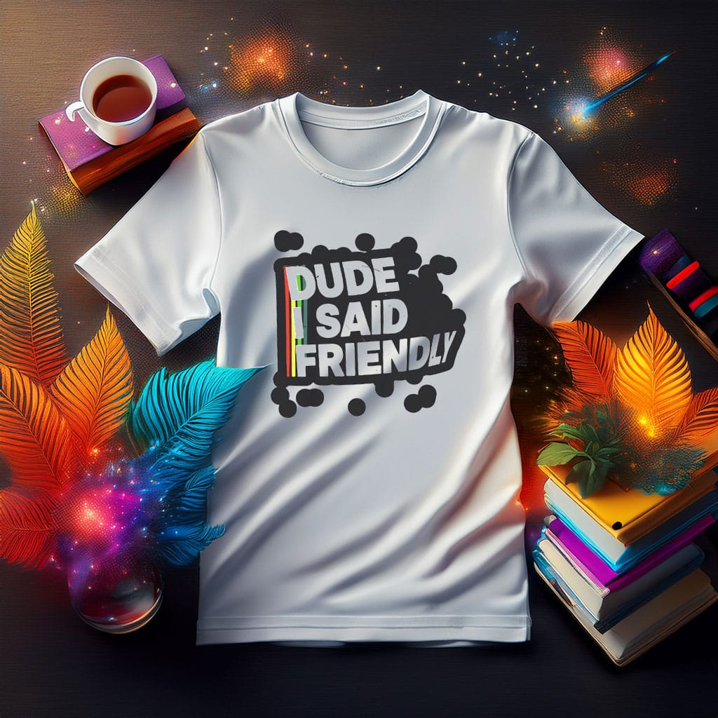 A bold “Dude Said Friendly” quote in a fun, gamer-style layout
