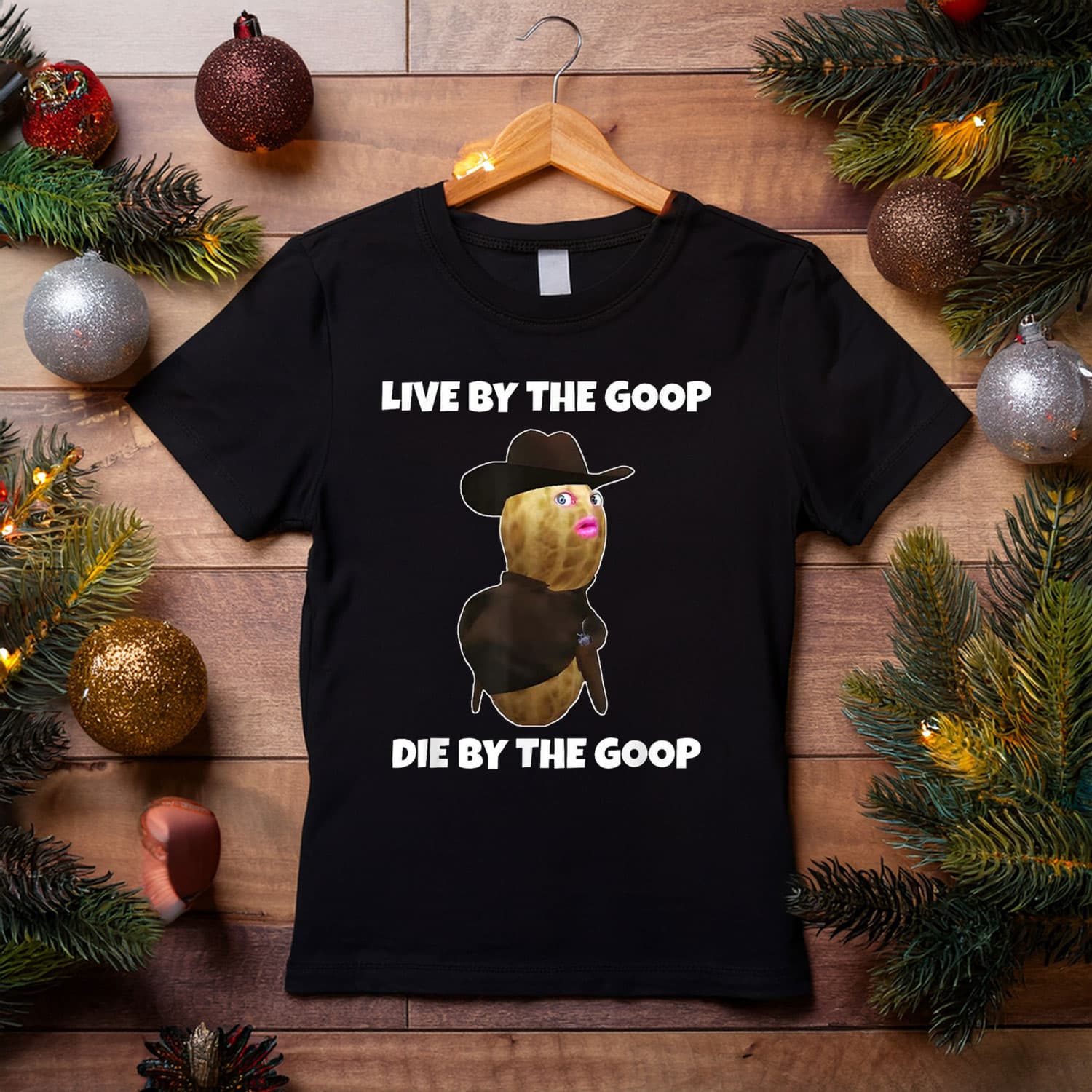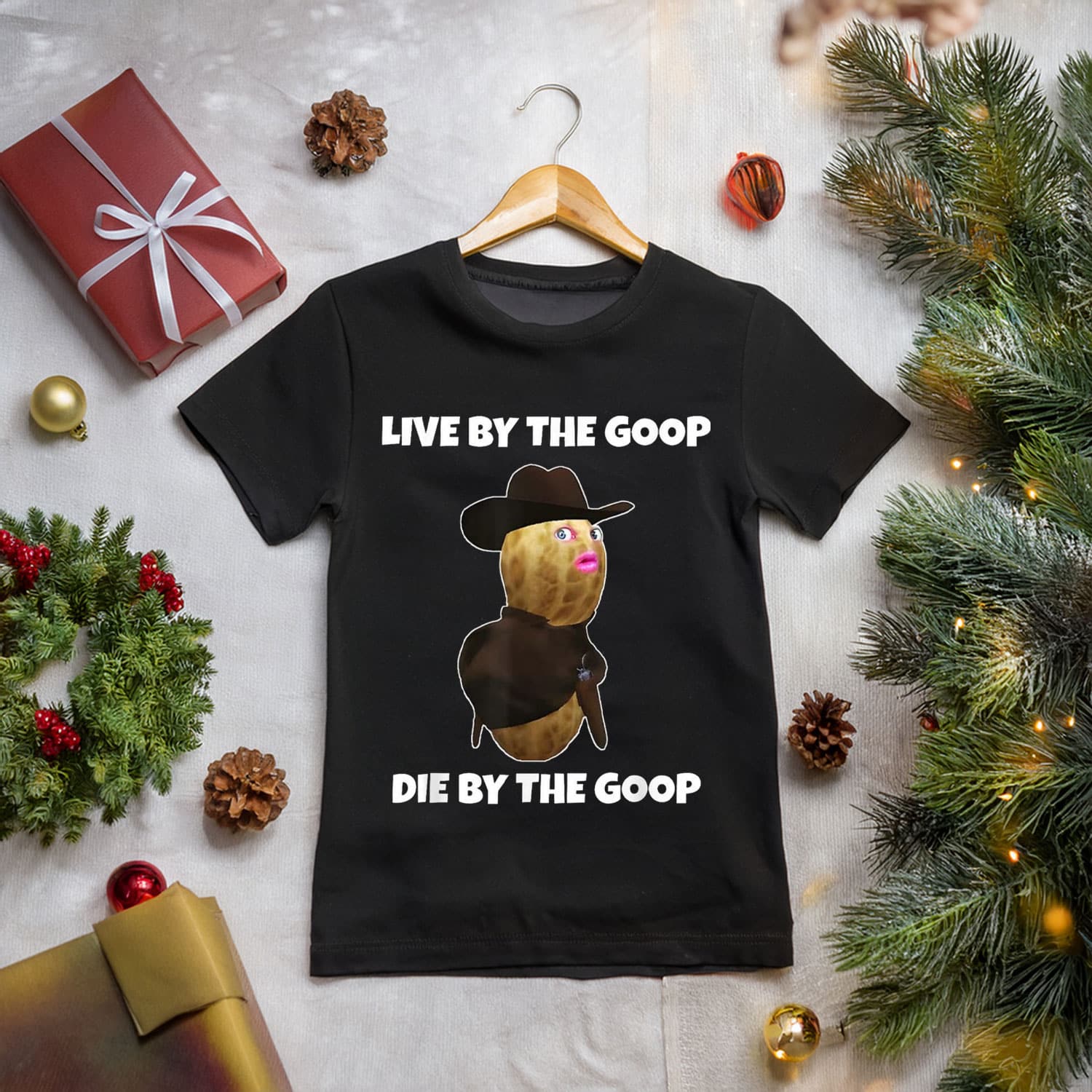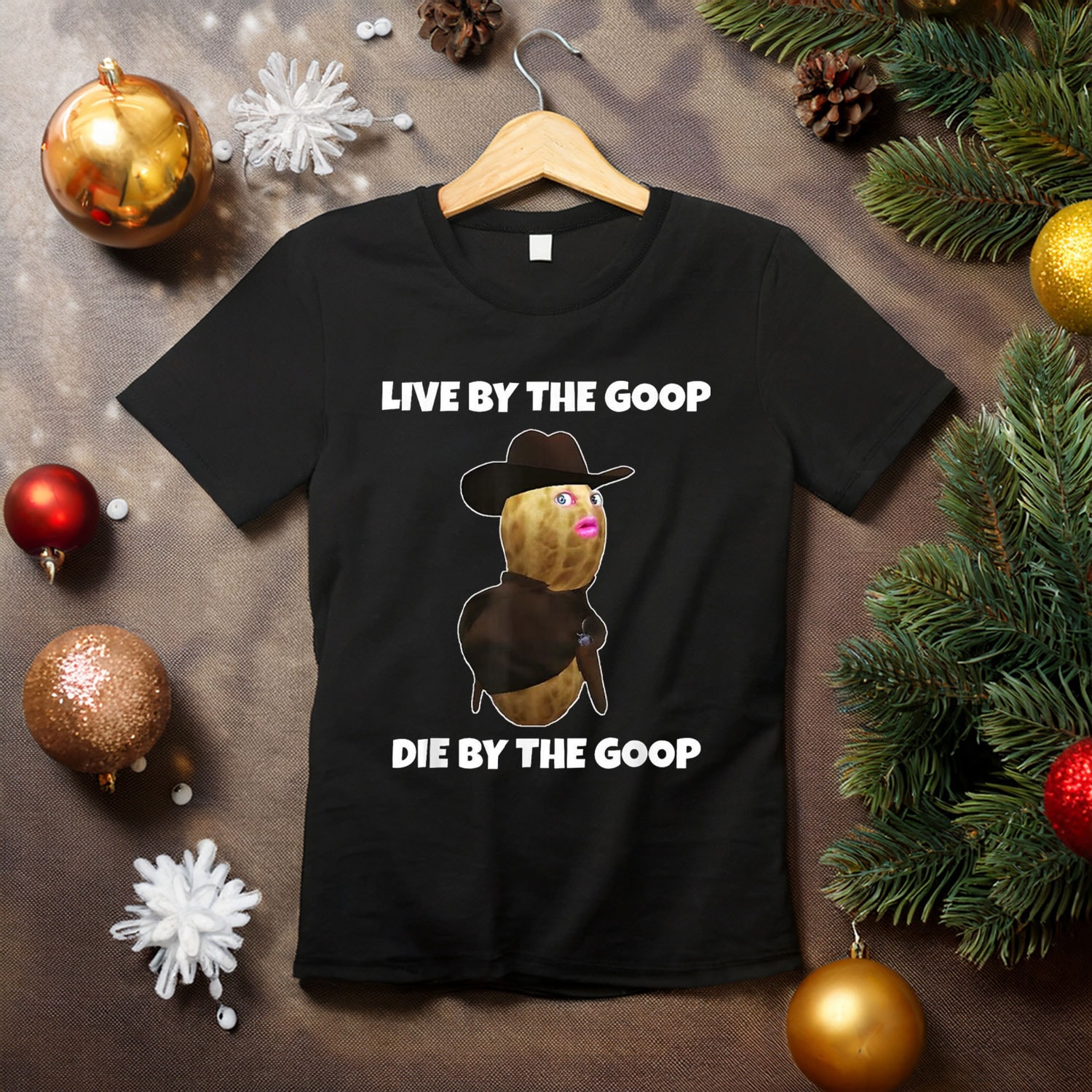 Bold, comedic typography celebrating the iconic “Burnt Peanut Bungulator Goop Goop” line
