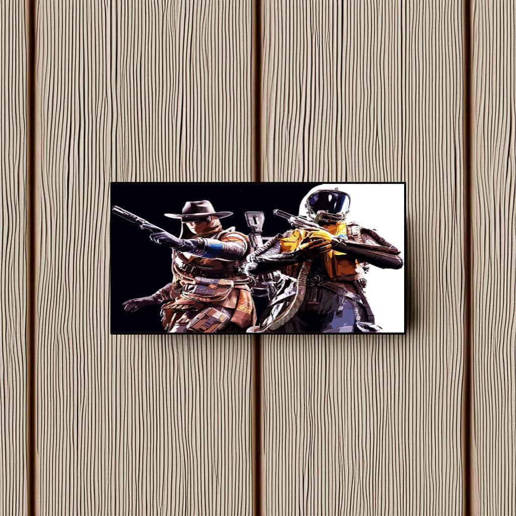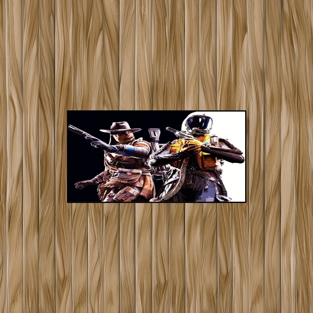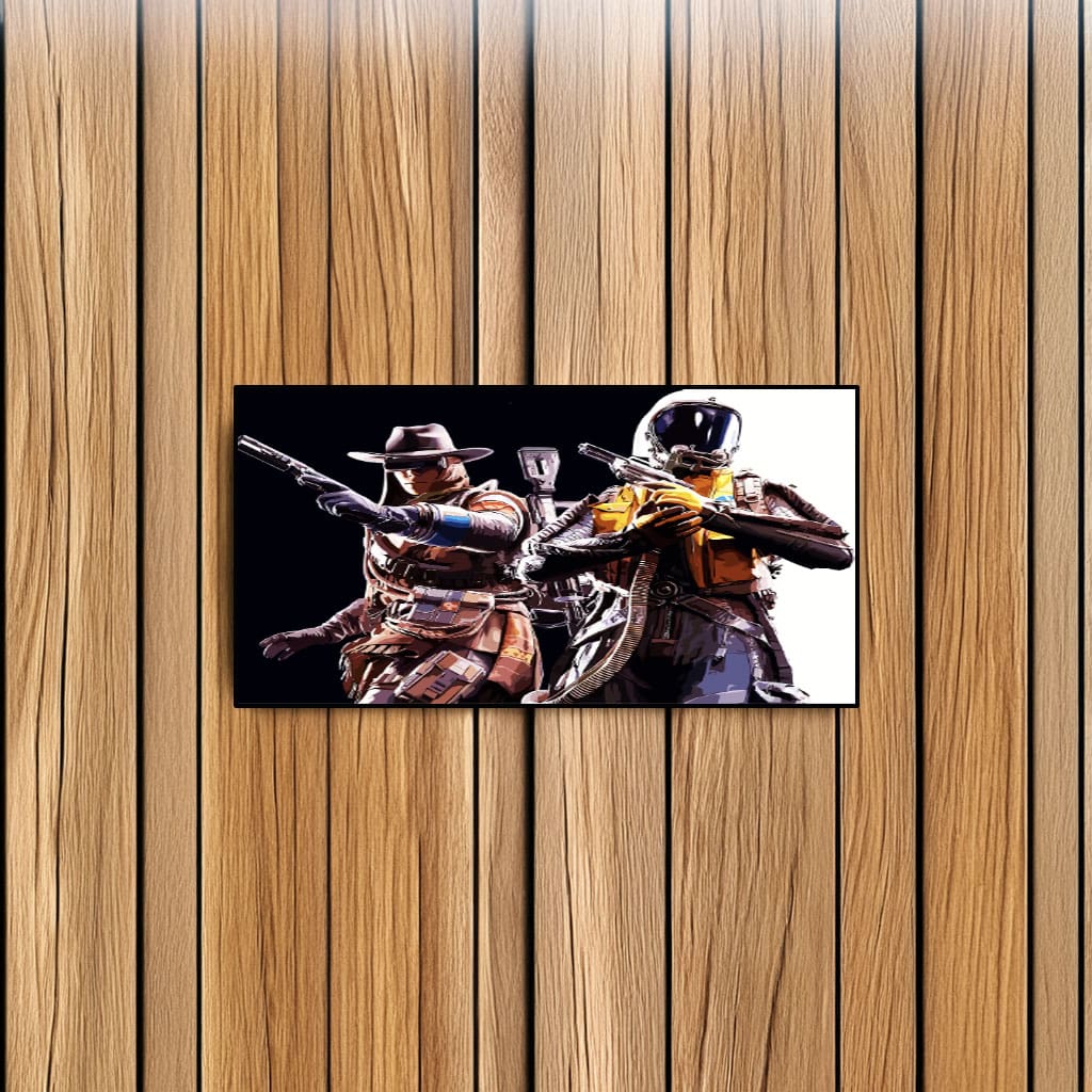 High-resolution artwork of a futuristic cowboy and astronaut in dynamic sci-fi scenery