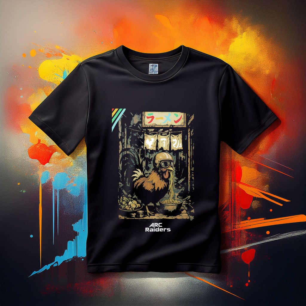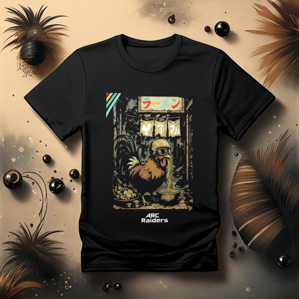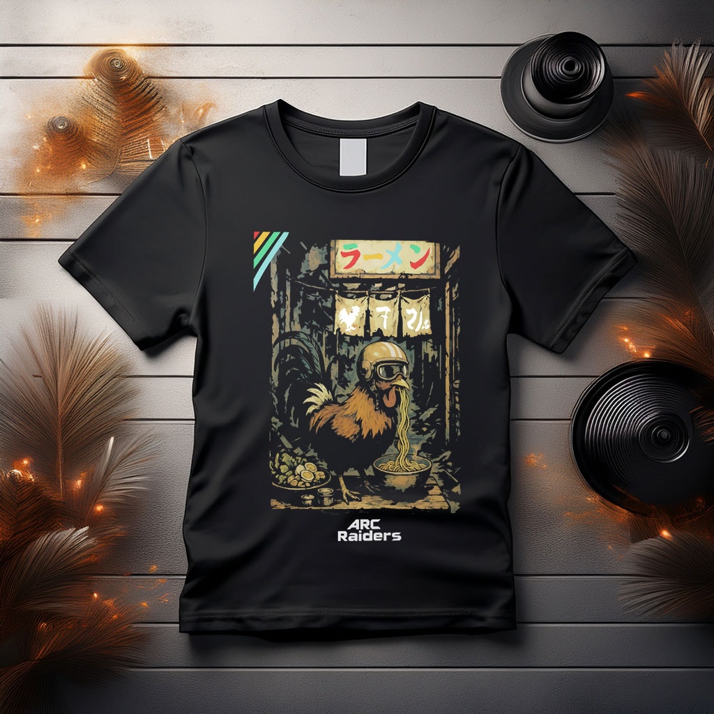 Ramen-Eating Chicken with Helmet Shirt – Playful Gamer Humor Meets Streetwear Style